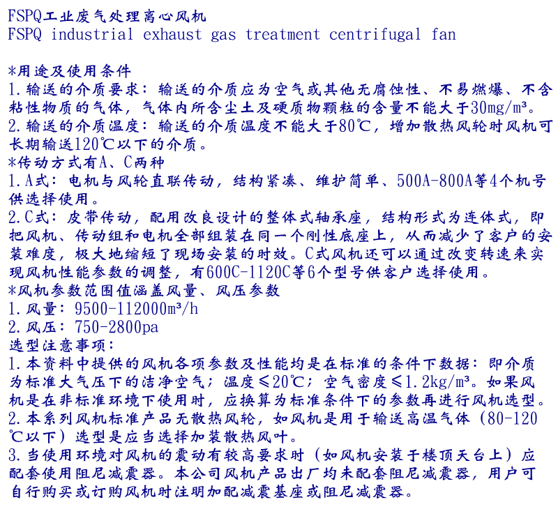 FSPQ工業(yè)離心通風(fēng)機(jī)