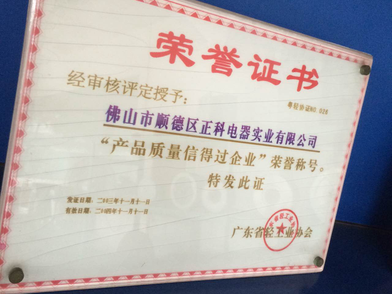 廣東省輕工業(yè)協(xié)會授予風(fēng)臣風(fēng)機(jī)為產(chǎn)品質(zhì)量信得